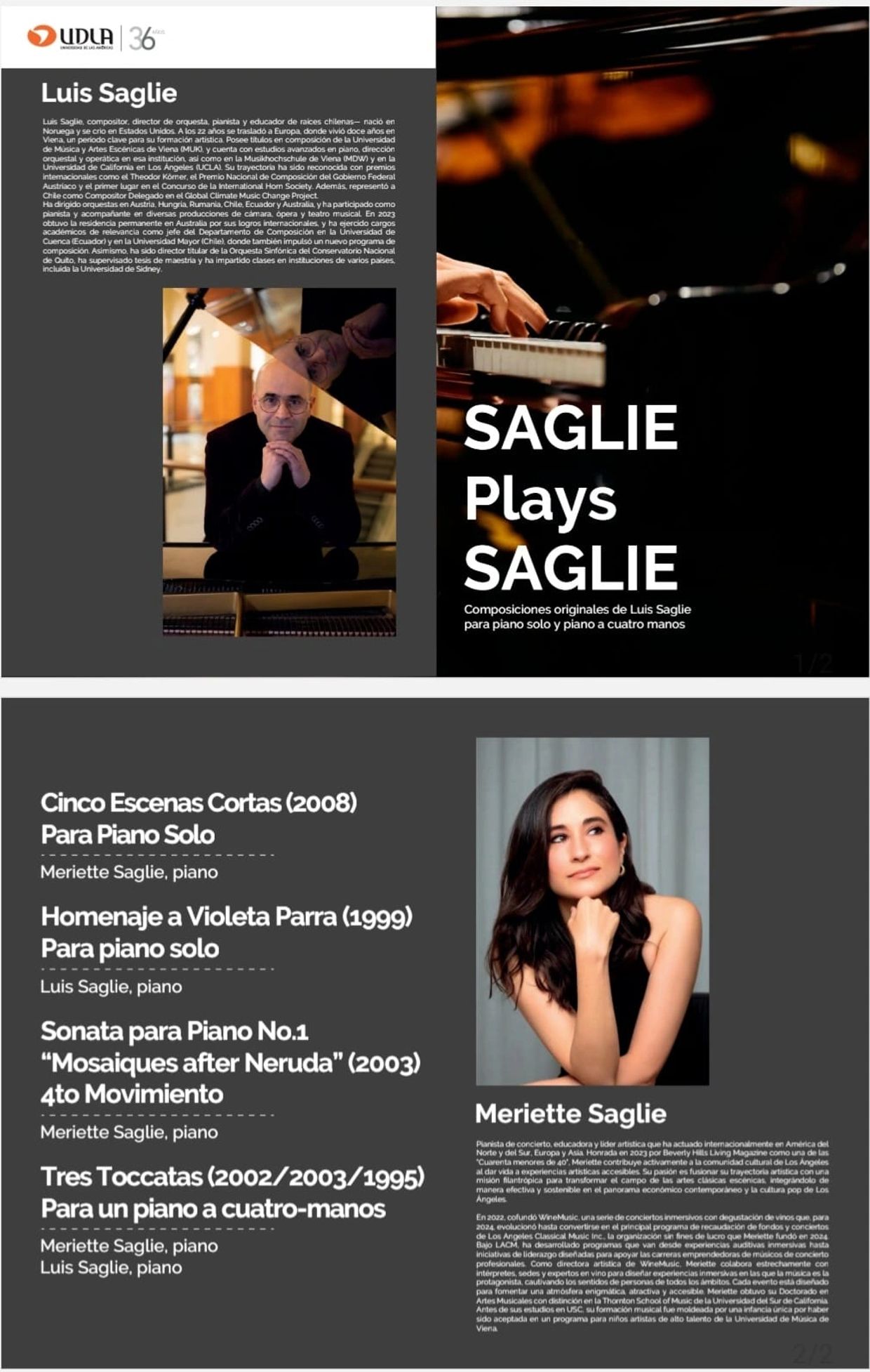 Meriette Saglie is a concert pianist, educator, and arts leader who has performed internationally across Asia, Europe, South America, and the United States. She is the CEO/President of Los Angeles Classical Music Inc. (LACM), a nonprofit dedicated to amplifying the careers of professional classical concert artists through immersive, mission-driven programming. A winner of multiple solo and chamber music competitions, Saglie is also the co-founder of WineMusic LA, a music and wine pairing series that launched LACM’s signature Immersive Listening Experience. In 2025, she debuted World Music Day, LACM’s global music festival celebrating cultural storytelling. Saglie holds a Doctor of Musical Arts from the USC Thornton School of Music and is known for curating performances that bridge tradition, innovation, and community.